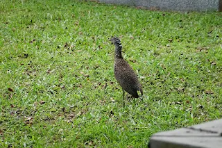 Malayan night heron is distributed in southern and eastern Asia. Twenty or thirty years ago, it was not easy to see the Malayan night heron in Taiwan and it is nocturnal. But the environment has changed, now they are often seen. I have seen Malayan night herons in Hualien and in Taipei Daan Forest Park as well as Dr. Sun Yat-Sen Memorial Hall. The one in Hualien (figure 1), from its black and white-spotted head, can be identified as a juvenile. The one in Daan Forest Park (figure 2) must be older. You can see their differences. The Malayan night heron is usually solitary. It roosts in trees and feeds in open areas. It is nocturnal. The most common food items are earthworms and frogs, and it will sometimes eat fish.