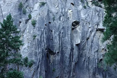 On May 23, 2017, the waterfall surged violently—like a galloping array of thousands of horses. But by October 9, 2023, it looked completely different. Amazingly, by September 2024, there was no water at Lower Yosemite Fall. What remains on the stone wall are traces of erosion left by water over the years.